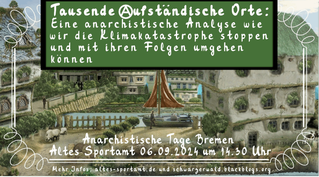 Diese Gesellschaft geht unter. Und trotz all der Katastrophen, welche diesen Untergang begleiten, ist das grundsätzlich gut. Unsere Gesellschaft war nämlich nie ein solidarischer, freiheitlicher oder schöner Ort. Nicht für den Großteil der Menschheit und alle anderen Lebewesen, die von ihr betroffen waren. Deshalb ist auch nicht ihr Untergang die Ursache der Katastrophen, sondern ihre Existenz. Während des Untergangs haben wir die Wahl, verzweifelt zu versuchen sie weiterlaufen zu lassen, als ob Jahrtausende patriarchal-staatlicher Unterdrückung und Jahrhunderte von kolonial-kapitalistischer Ausbeutung noch mal verlängert werden sollten, und damit einhergehend das Leid noch zu verschlimmern oder wir entscheiden uns für den Bruch mit ihr…